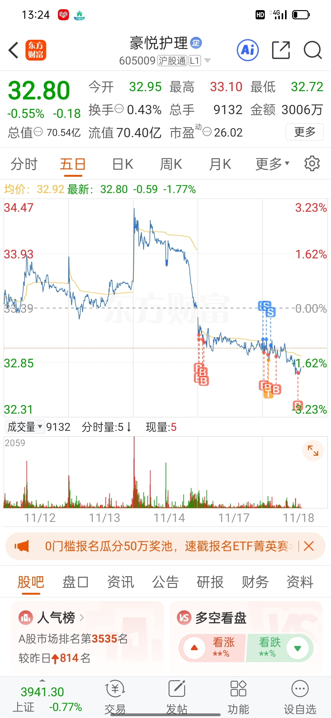 $豪悦护理(SH605009)$ 看好一支票,你所需要的,就是等到买的机会,然后静静等待岁月的收获
