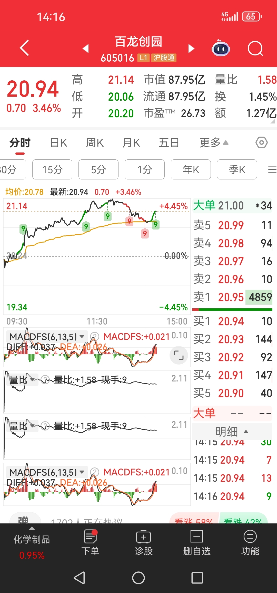 $百龙创园(SH605016)$ 这卖盘太假,收盘光头阳有戏啊!