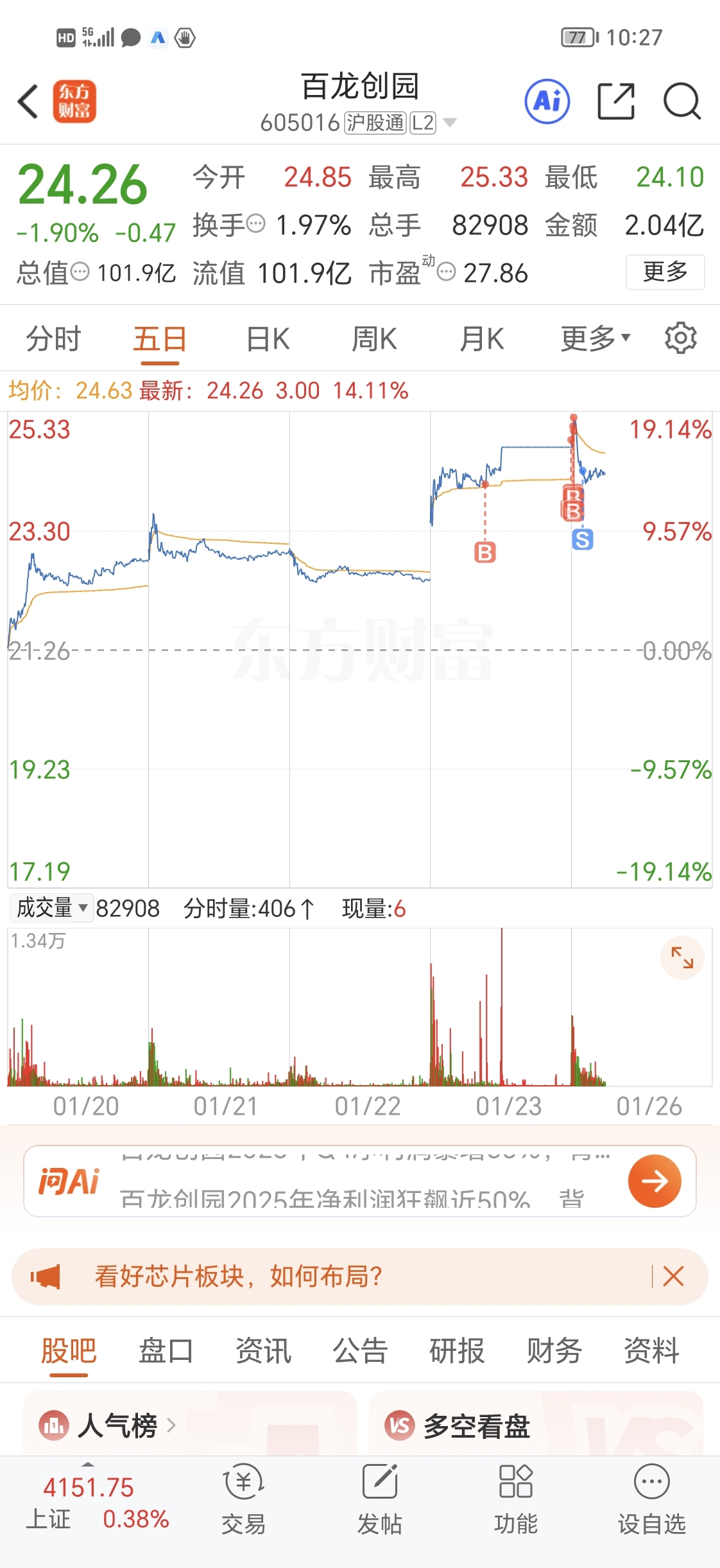 早盘我如果盈利5个点卖了百龙,今天我就能盈利不会亏。今天集合竞价就加仓百龙,百龙