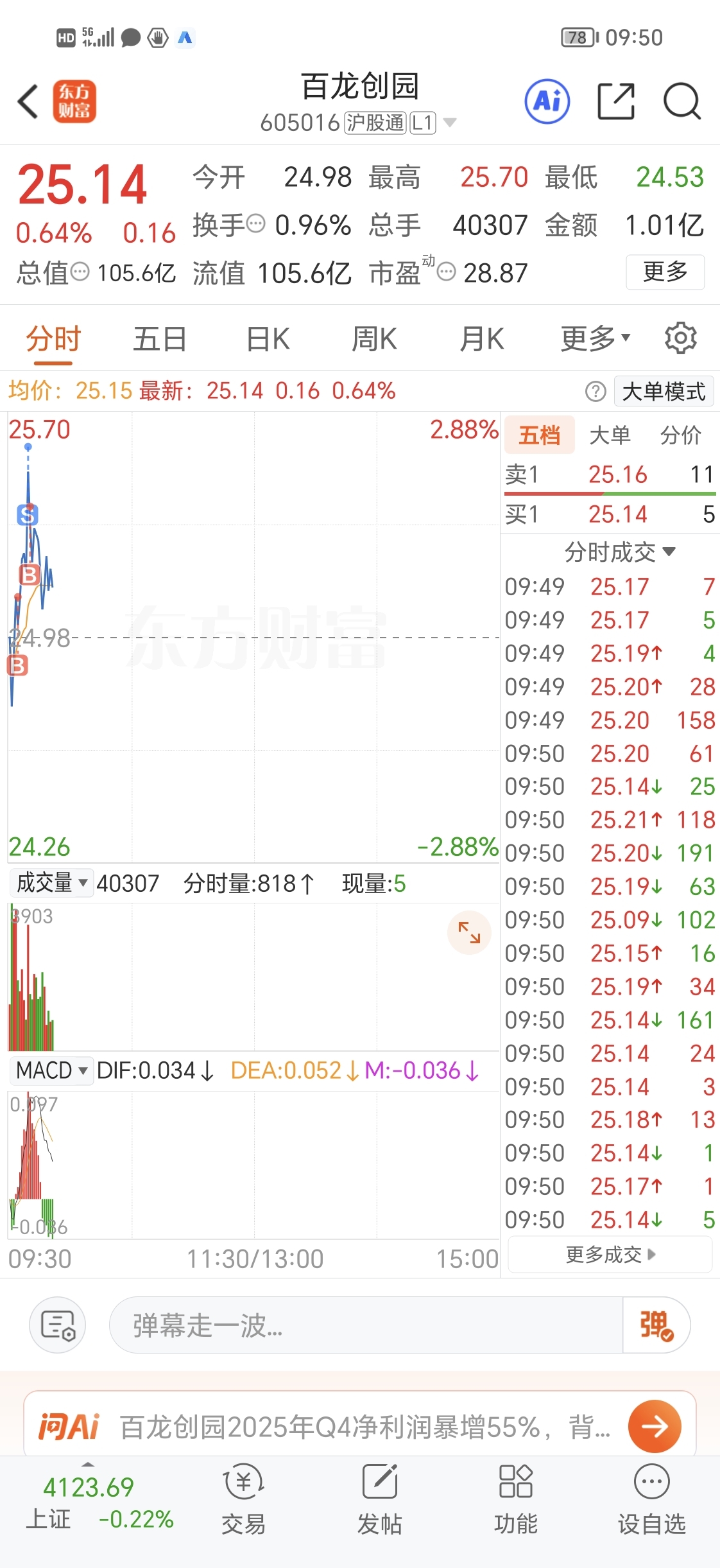 $百龙创园(SH605016)$ 昨天持有半仓百龙,今天涨2.5个点我卖了一点点,如果今天卖了还是能挣几千出来,但是我只买了一点点,早盘低点加仓的卖了。逆势能红的都是好票,昨天我既然重仓了就不该割底仓。