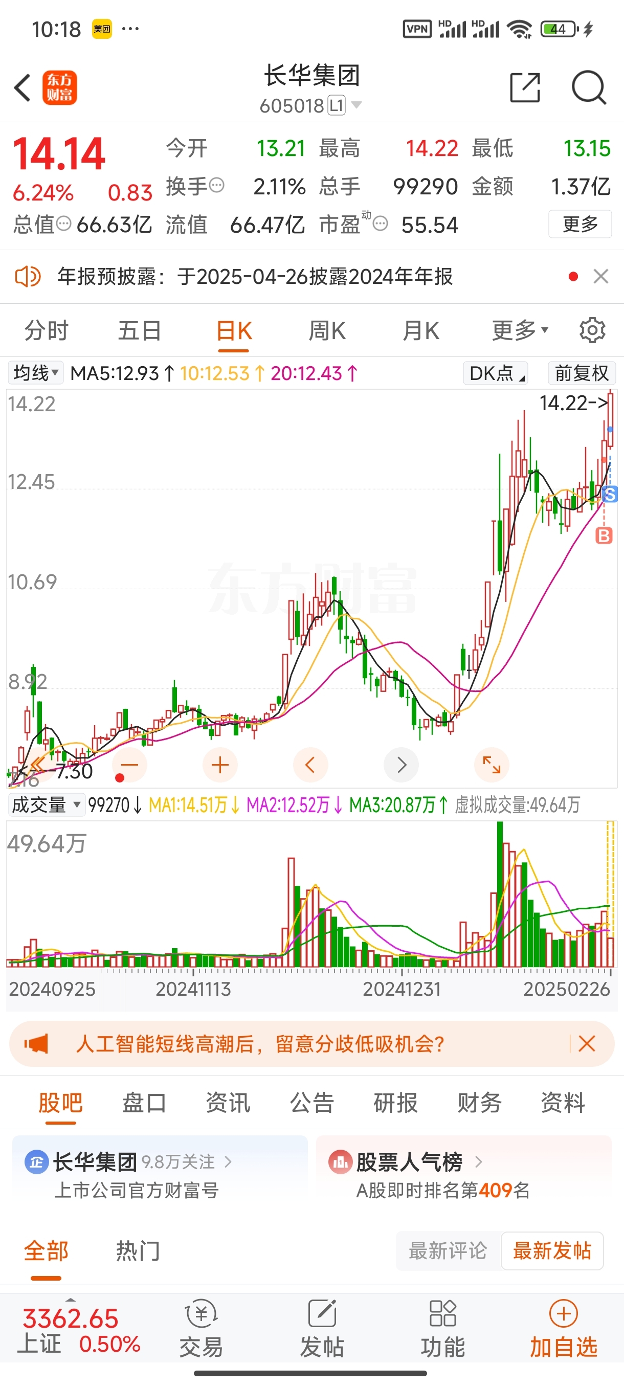 $长华集团(SH605018)$