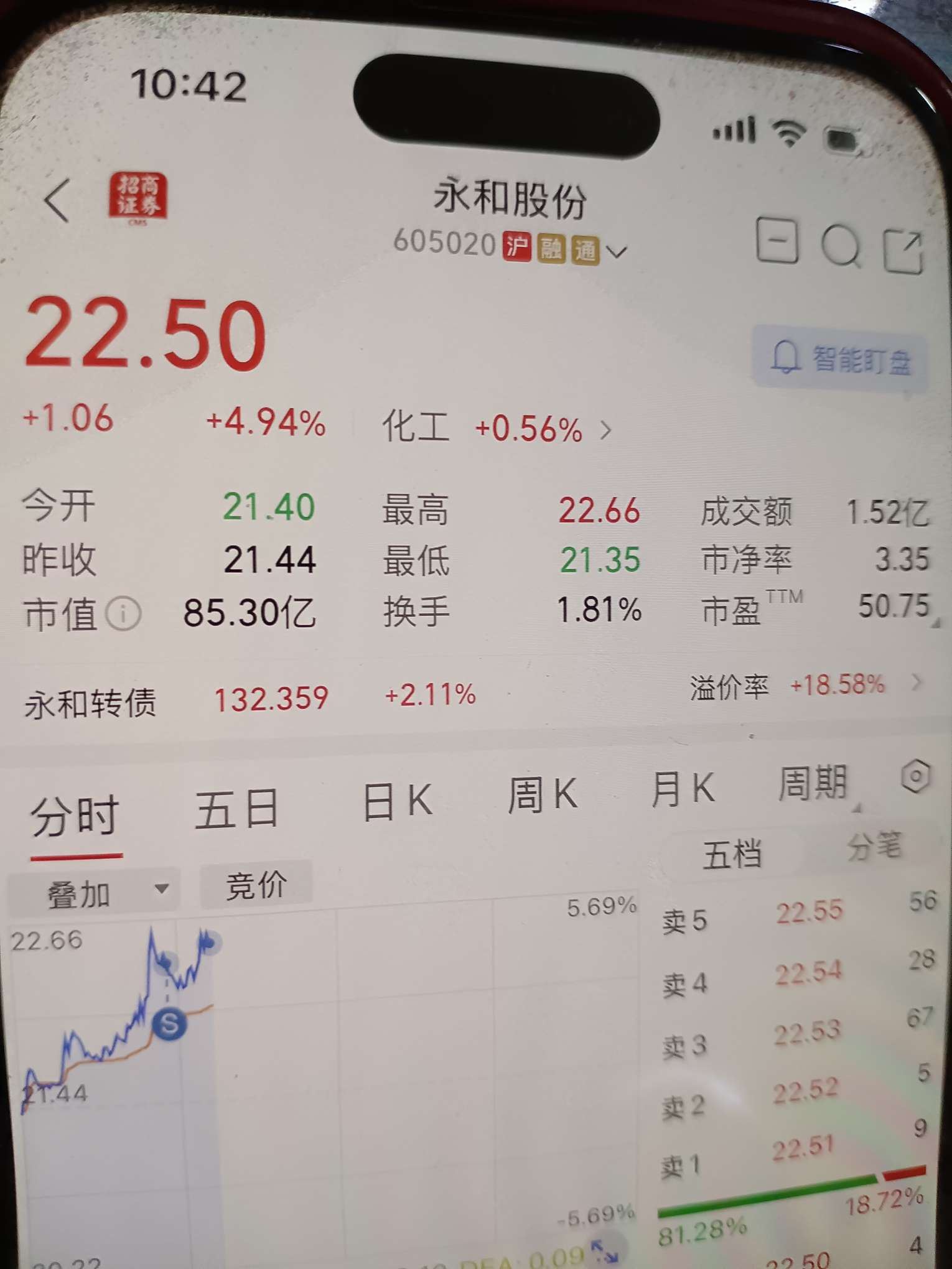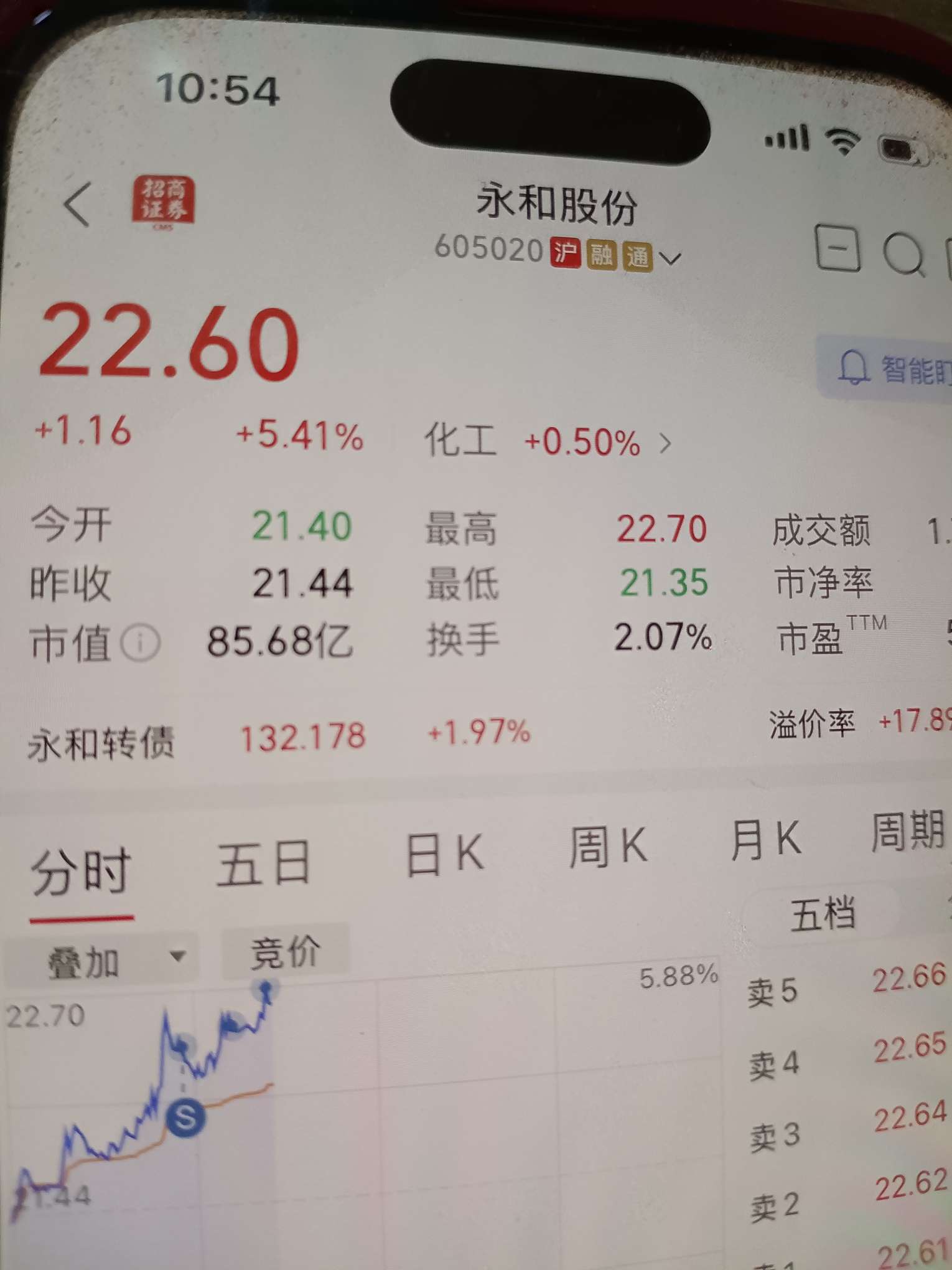 刚才一会会没有看就涨了一块钱了,吧里面兄弟让我做t。我赶紧就22.46卖了。听人