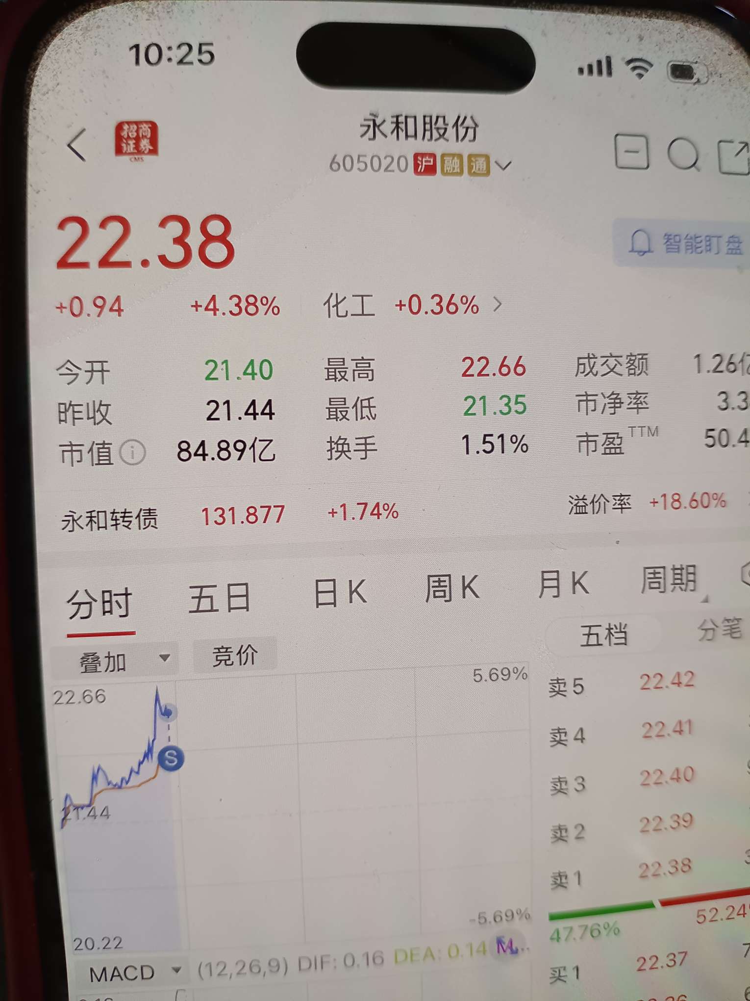 二次冲高我继续22.58卖。盘口一般了,今天估计差不多了。