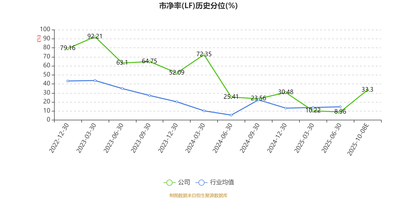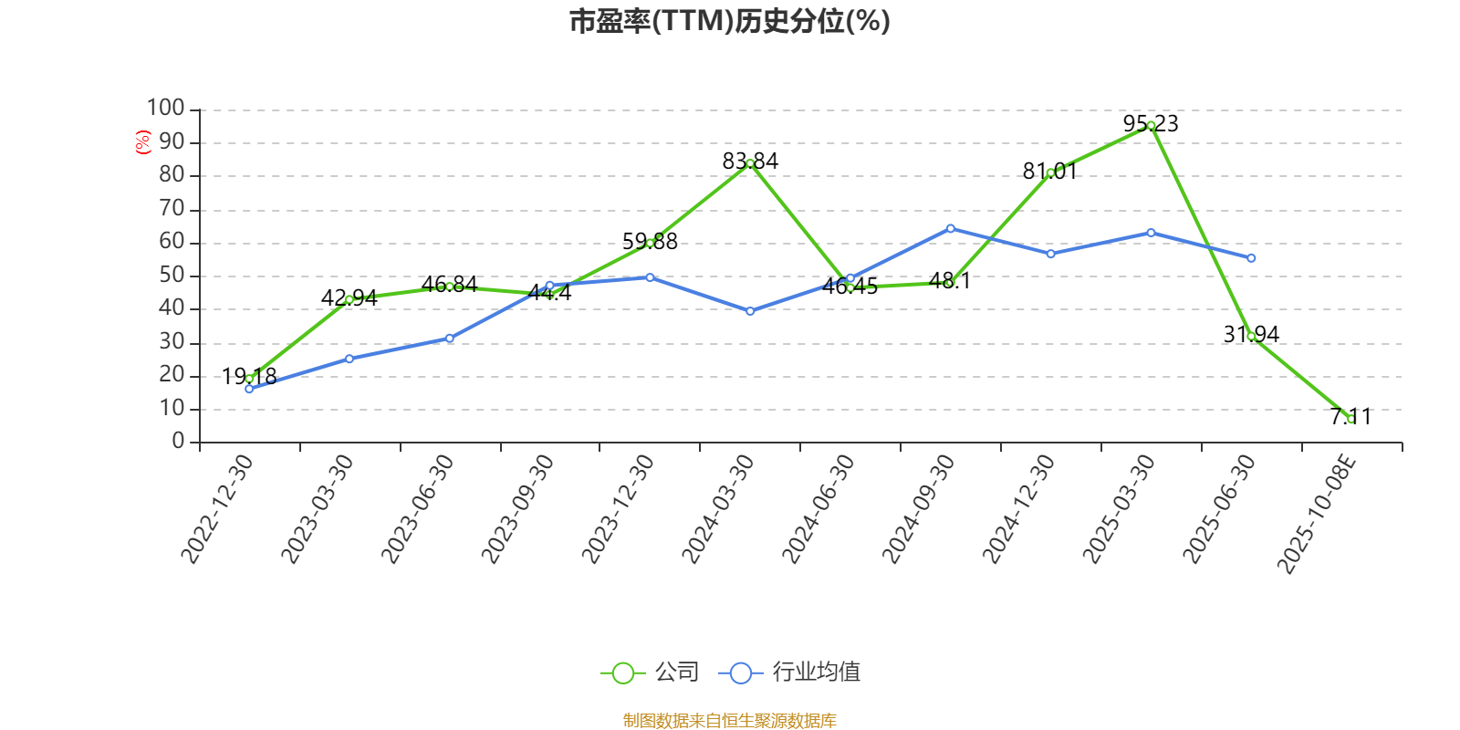 市盈率、市净率为负时,不显示当期分位数,会导致折线图中断。