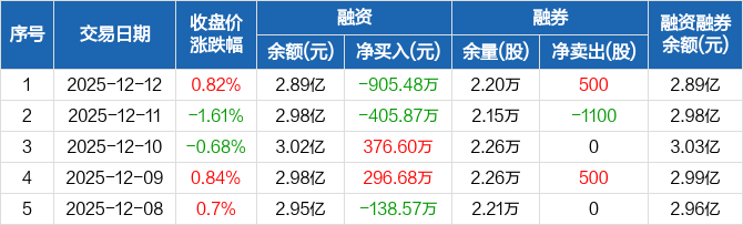 永和股份:融资净偿还905.48万元,融资余额2.89亿元(12-12)