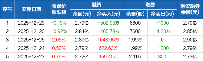 永和股份:融资净偿还502.95万元,融资余额2.79亿元(12-29)