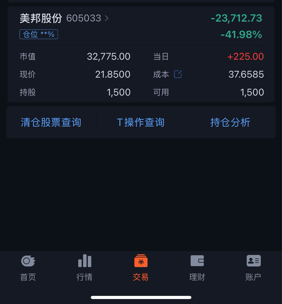 $美邦股份(SH605033)$ 没钱加仓,在哪里跌倒我只能在哪里躺着。谁有我成本高啊天菩萨
