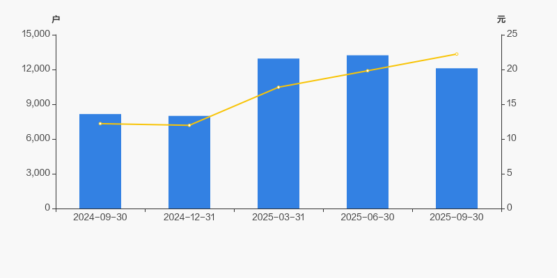 截至2025年9月30日,公司最新总股本为1.35亿股,且均为流通股。户均持有流通股数量由上期的1.02万股上升至1.12万股,户均流通市值24.82万元。