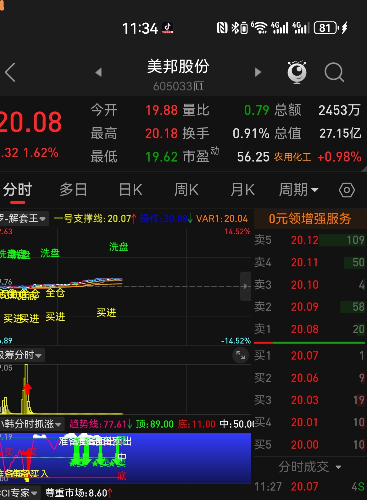 $美邦股份(SH605033)$ 20.1-20.18最高点高抛低吸!!!