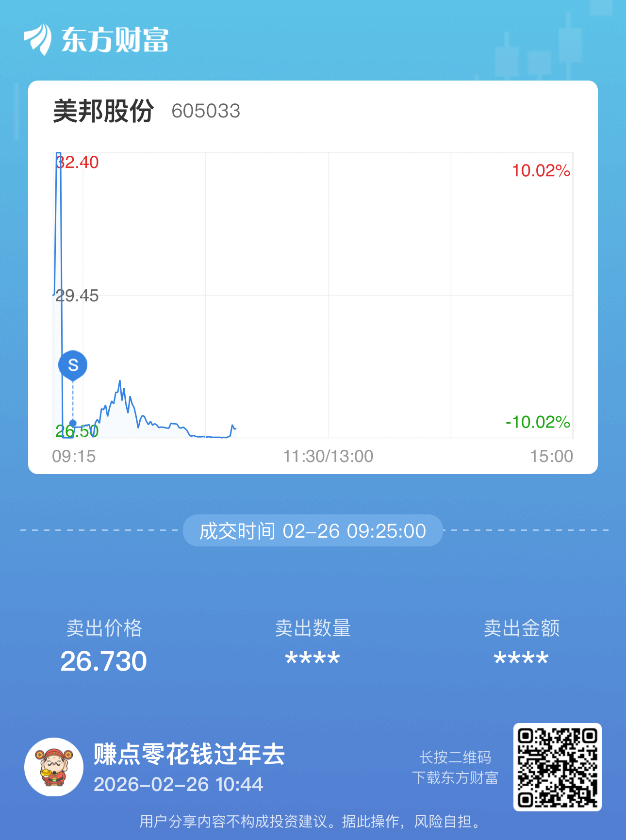 温馨提示: 1.根据《证券法》规定,禁止编造、传播虚假信息或者误导性信息,扰乱证券市场;2.用户在本社区发表的所有资料、言论等仅代表个人观点,与本网站立场无关,不对您构成任何投资建议。用户应基于自己的独立判断,自行决定证券投资并承担相应风险。《东方财富社区管理规定》