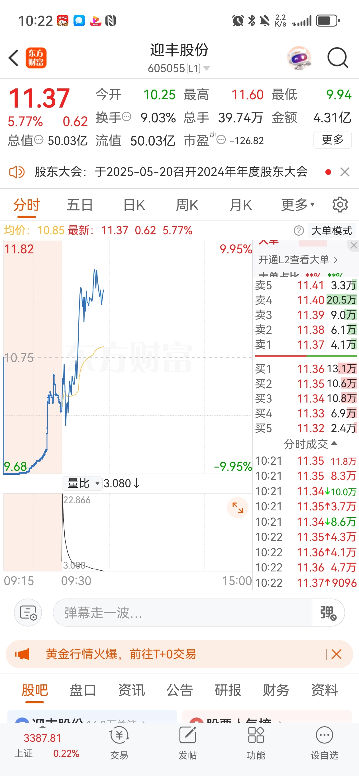 $迎丰股份(SH605055)$ 买不到浪莎股份赶紧上车迎丰股份,都是同样纺织品概念