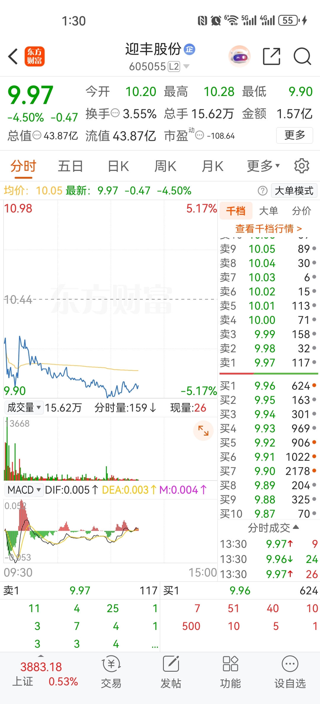 $迎丰股份(SH605055)$ 哪位高手来解读一下这个盘口,下面托单这么多,上面没啥抛盘,为啥股价就是上不去