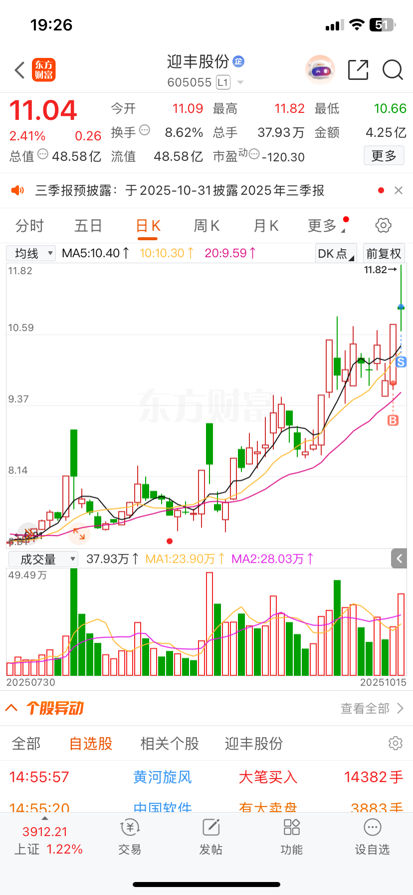 $迎丰股份(SH605055)$ 今天开盘就卖了,明天黑四,要绿了