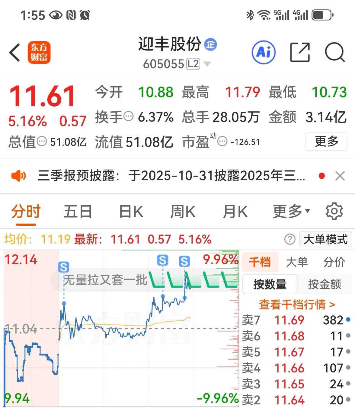 $迎丰股份(SH605055)$ 不等你卖光光,主力它就是不拉,貌似只差你的仨瓜俩枣。祝留下的股友继续发财!