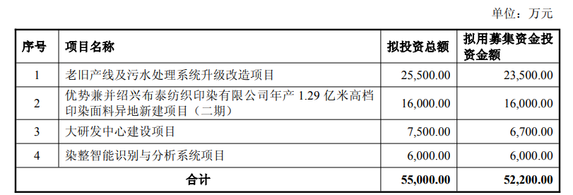 12月22日晚间,迎丰股份(605055)公告,公司拟向不超过35名特定投资者发行股份,总募资不超5.22亿元,用于老旧产线及污水处理系统升级改造项目、优势兼并绍兴布泰纺织印染有限公司年产1.29亿米高档印染面料异地新建项目(二期)、大研发中心建设项目、染整智能识别与分析系统项目。