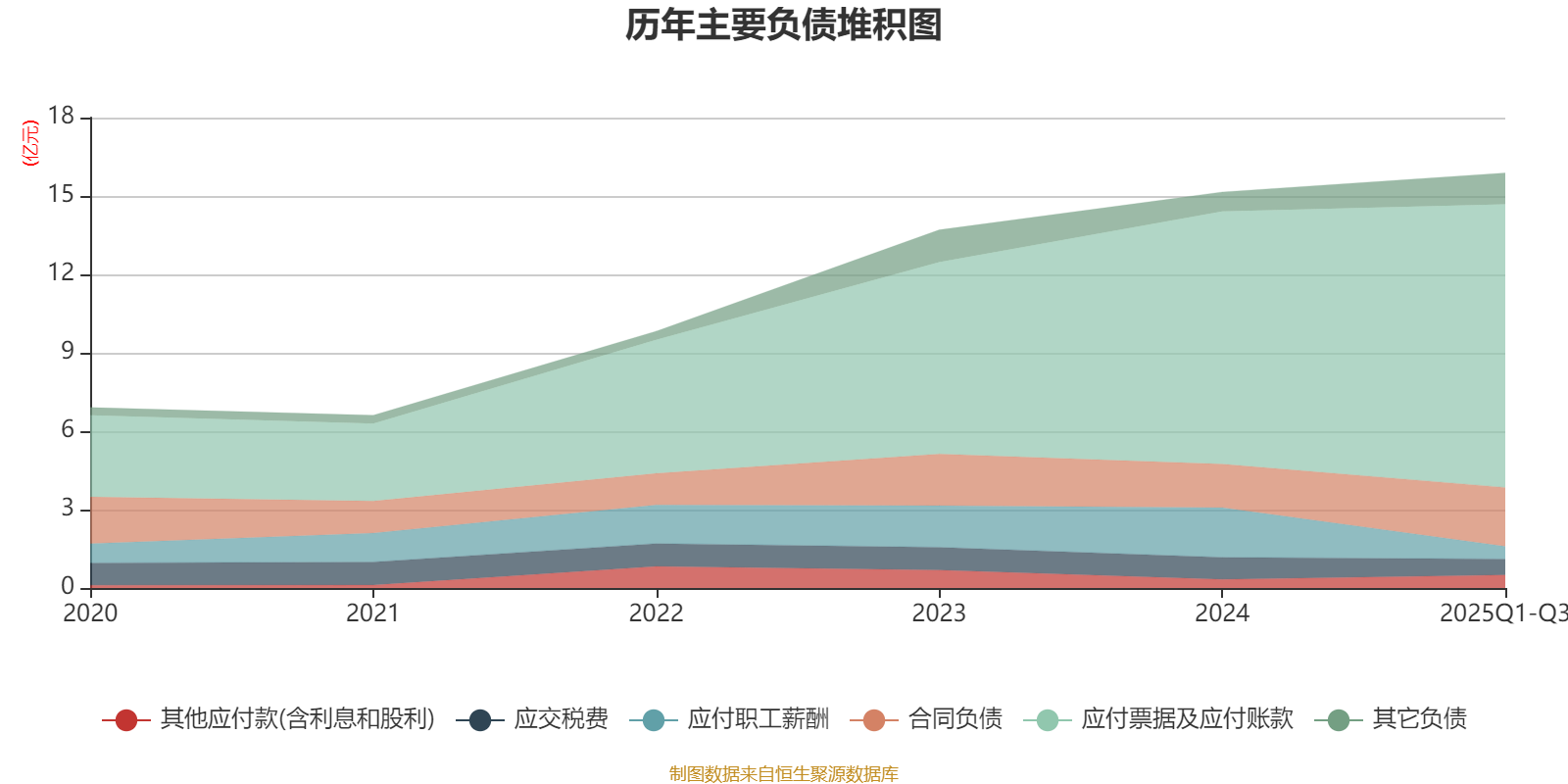 负债重大变化方面,截至2025年三季度末,公司应付职工薪酬较上年末减少74.43%,占公司总资产比重下降4.37个百分点;应付票据及应付账款较上年末增加12.02%,占公司总资产比重上升3.11个百分点;合同负债较上年末增加35.12%,占公司总资产比重上升1.71个百分点;短期借款较上年末增加140.04%,占公司总资产比重上升1.24个百分点。