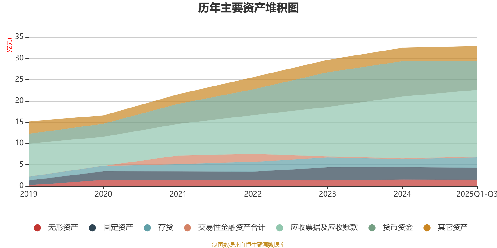 资产重大变化方面,截至2025年三季度末,公司货币资金较上年末减少18.16%,占公司总资产比重下降4.95个百分点;应收票据及应收账款较上年末增加8.09%,占公司总资产比重上升2.94个百分点;存货较上年末增加28.58%,占公司总资产比重上升1.56个百分点;在建工程合计较上年末增加60.85%,占公司总资产比重上升0.71个百分点。