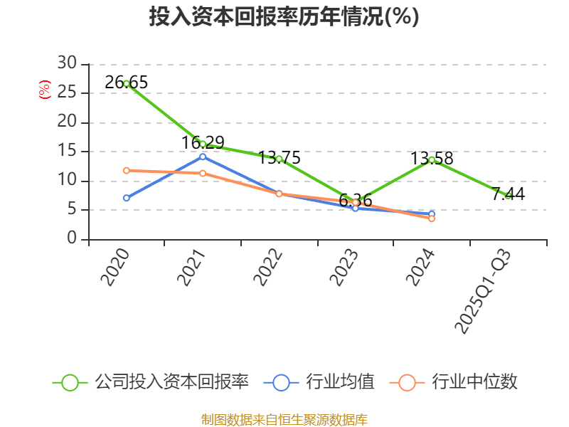盈利能力方面, 2025年前三季度公司加权平均净资产收益率为7.55%,同比上升1.46个百分点。公司2025年前三季度投入资本回报率为7.44%,较上年同期上升1.62个百分点。