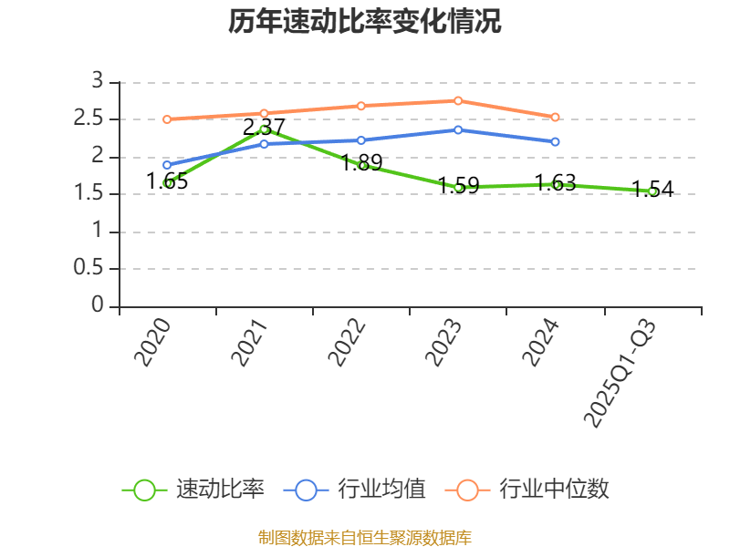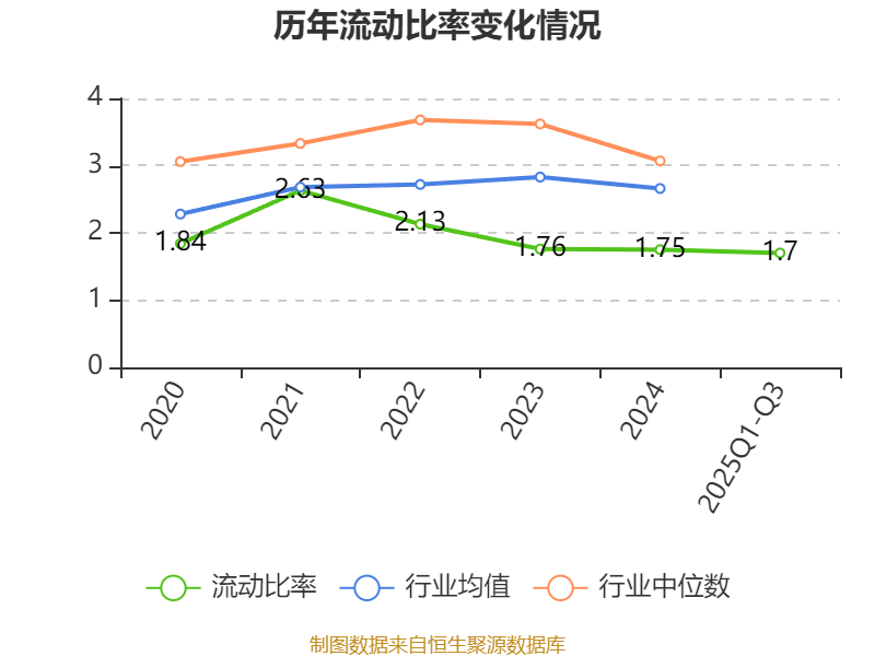 2025年前三季度,公司流动比率为1.7,速动比率为1.54。