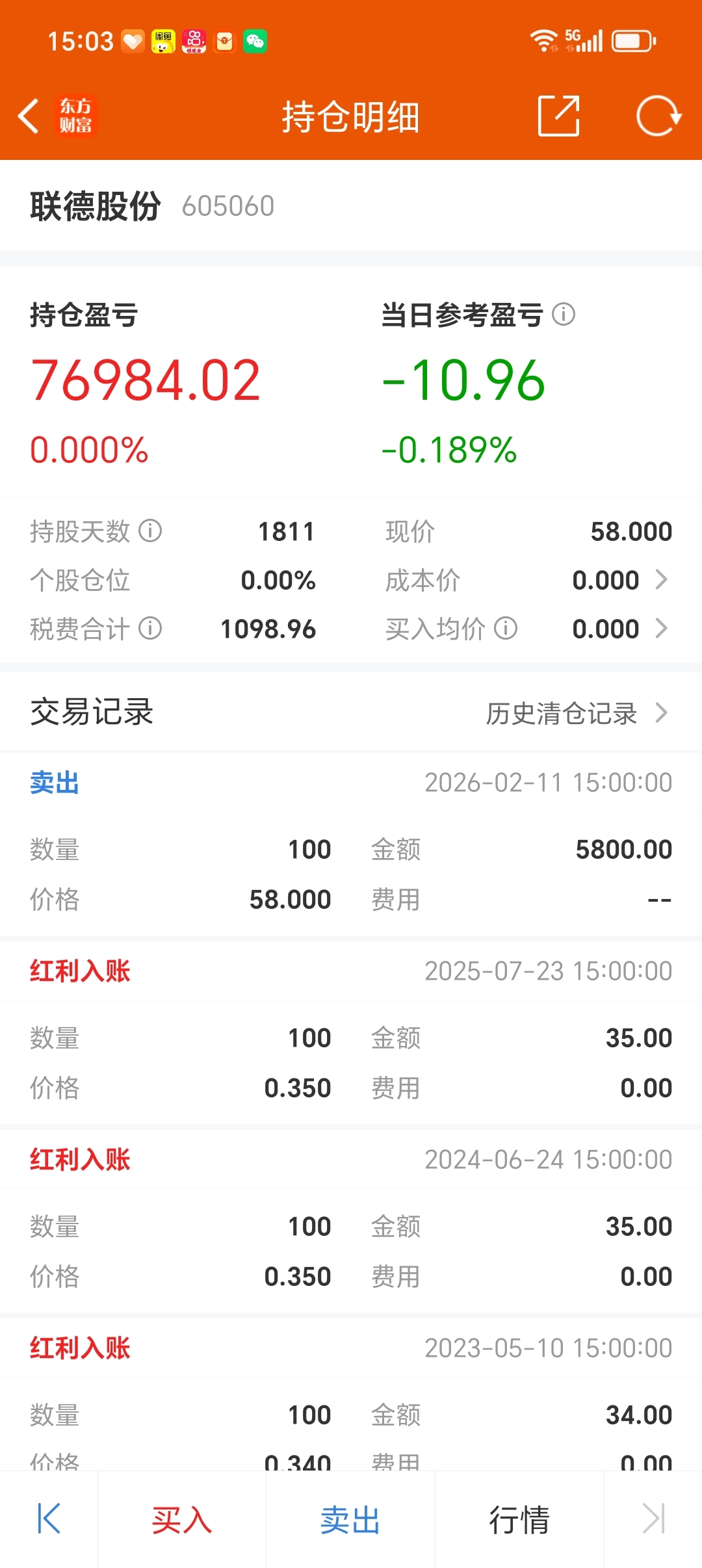 玩股票第一次中签,一千股,到今天最后一百股卖了,拿了1811天了,