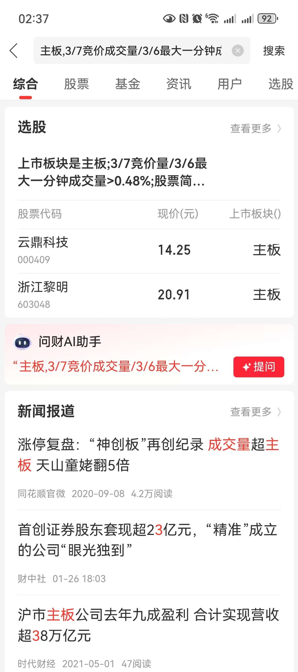 3月7日0点系统选股:1. 4板云鼎科技15.68,云鼎挂单1成。2. 3板浙江黎明23.0,挂单1成。今天9点18分封单小于10万手撤单。3. 2板海南华铁,2选1。4. 云内动力(pk南兴股份),2选2。把哥提示的股(见图)先加入自选股,留强去弱,等回封买点。哥每天9点26-28分单点1只股。