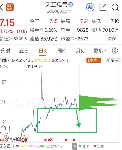$天正电气(SH605066)$ 继续往下跌一个平台,本周破7