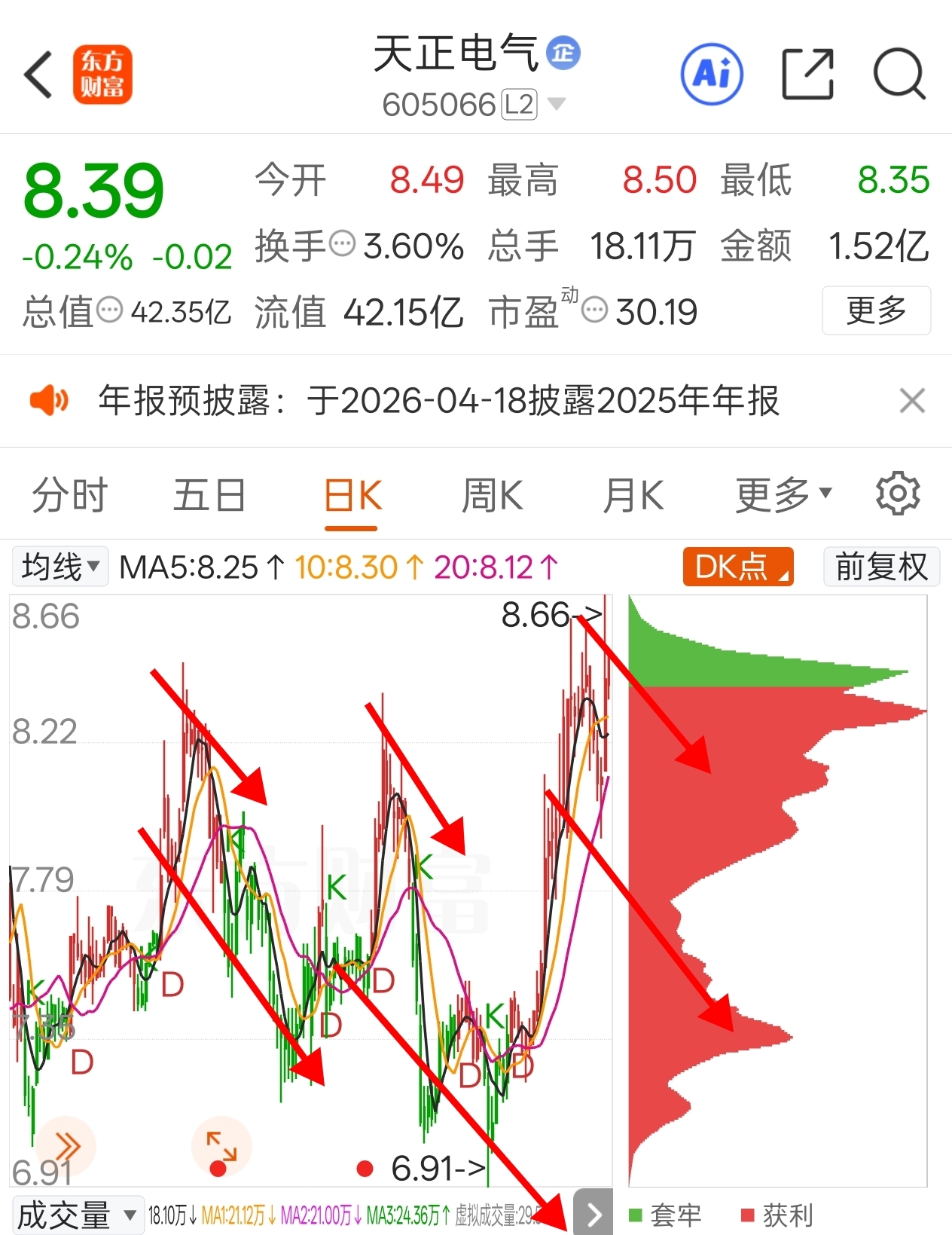 $天正电气(SH605066)$ 今天开始跌,走着瞧
