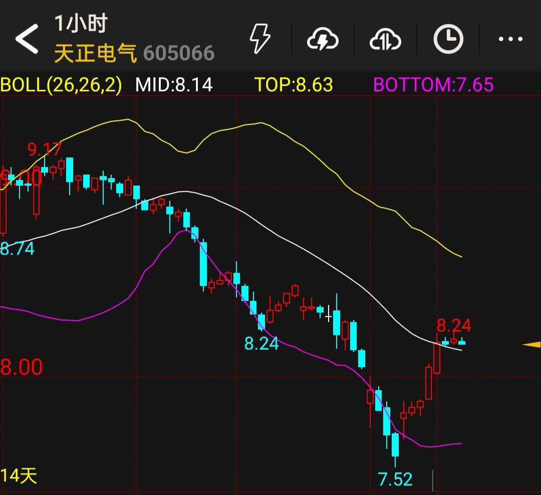 天正电气,一探底7.53元价的我们要条件反射地想到往8.28元价涨的事,这样炒股