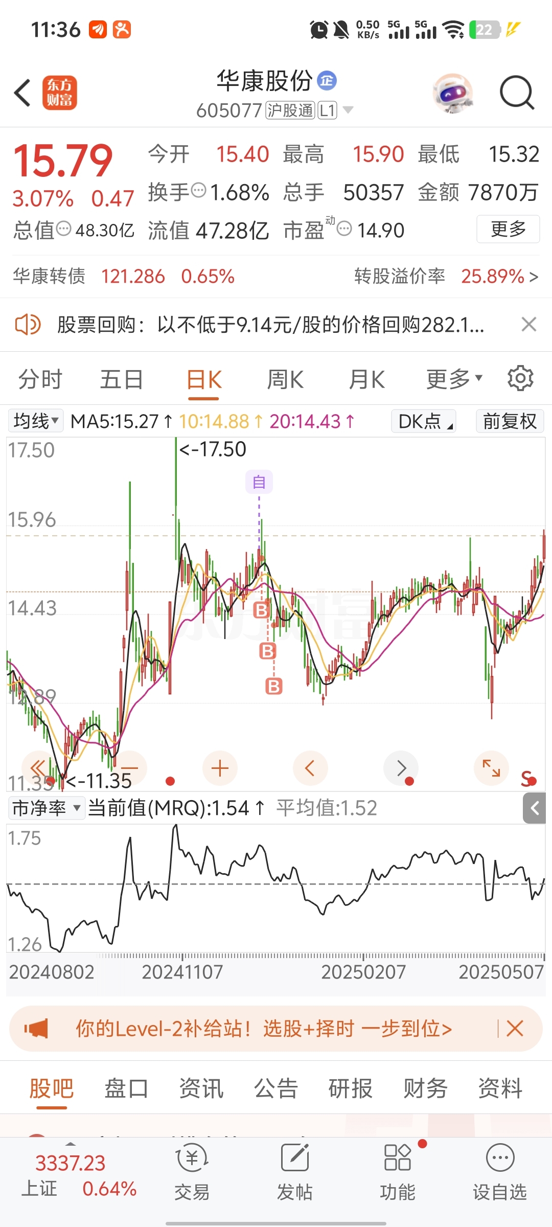 $华康股份(SH605077)$ 看好华康,到20,持股待涨
