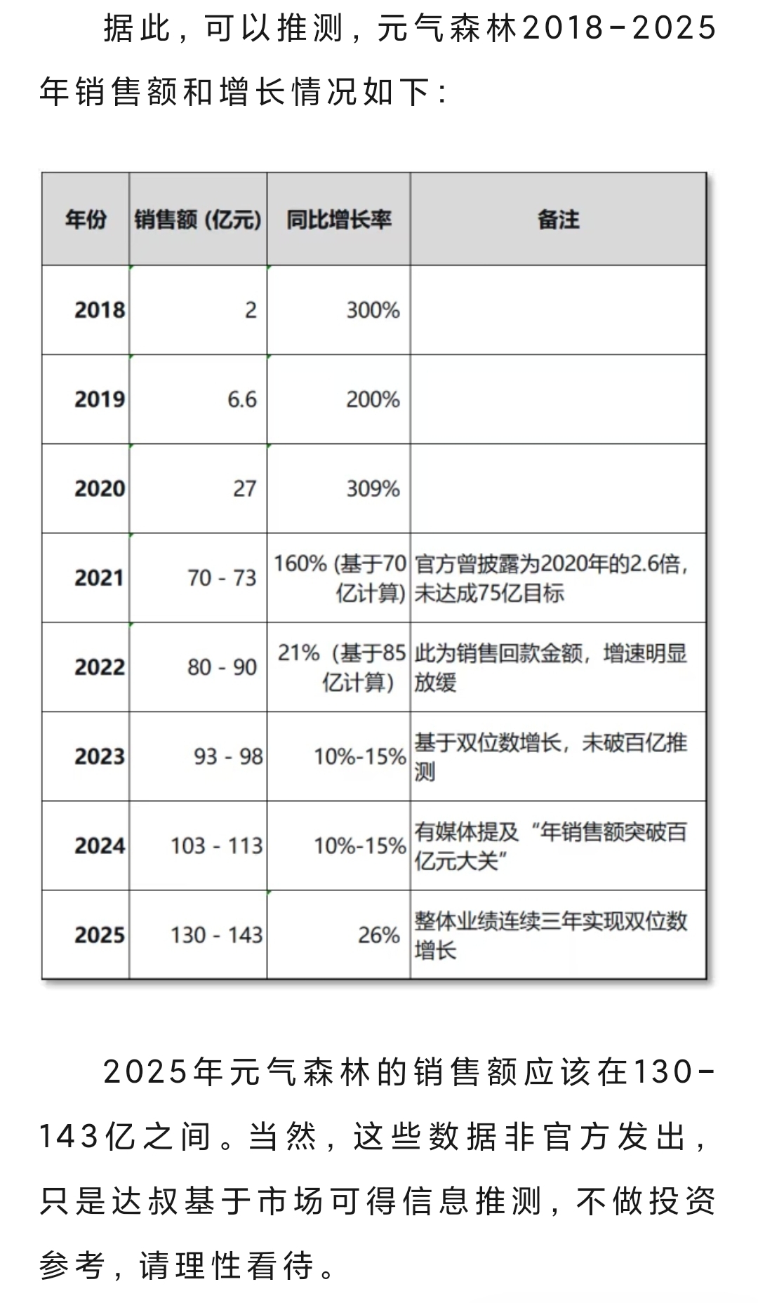 媒体推测元气森林近几年营业额是多少?25年增速26%已确定