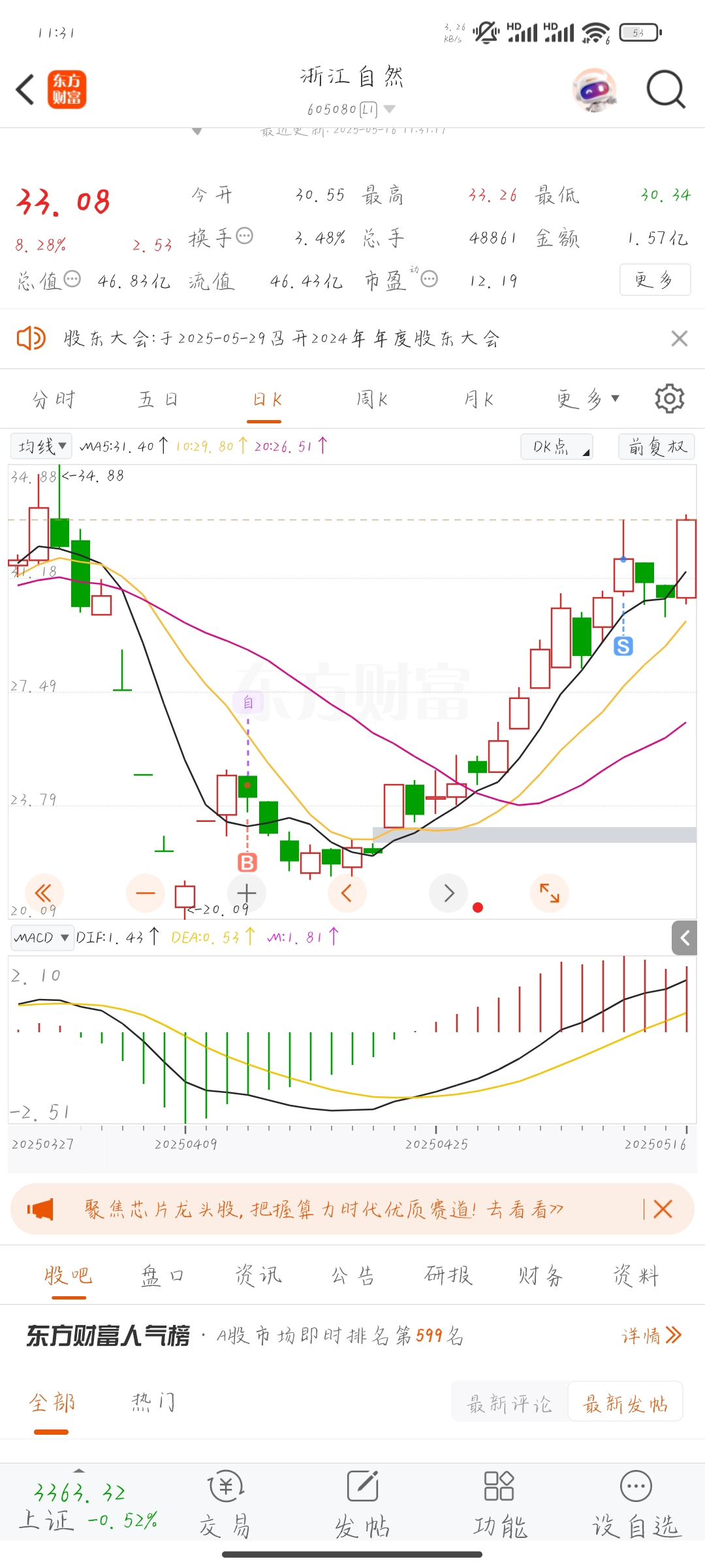$浙江自然(SH605080)$ 好牛啊你,不愧是我看好的,但是前两天清仓了~