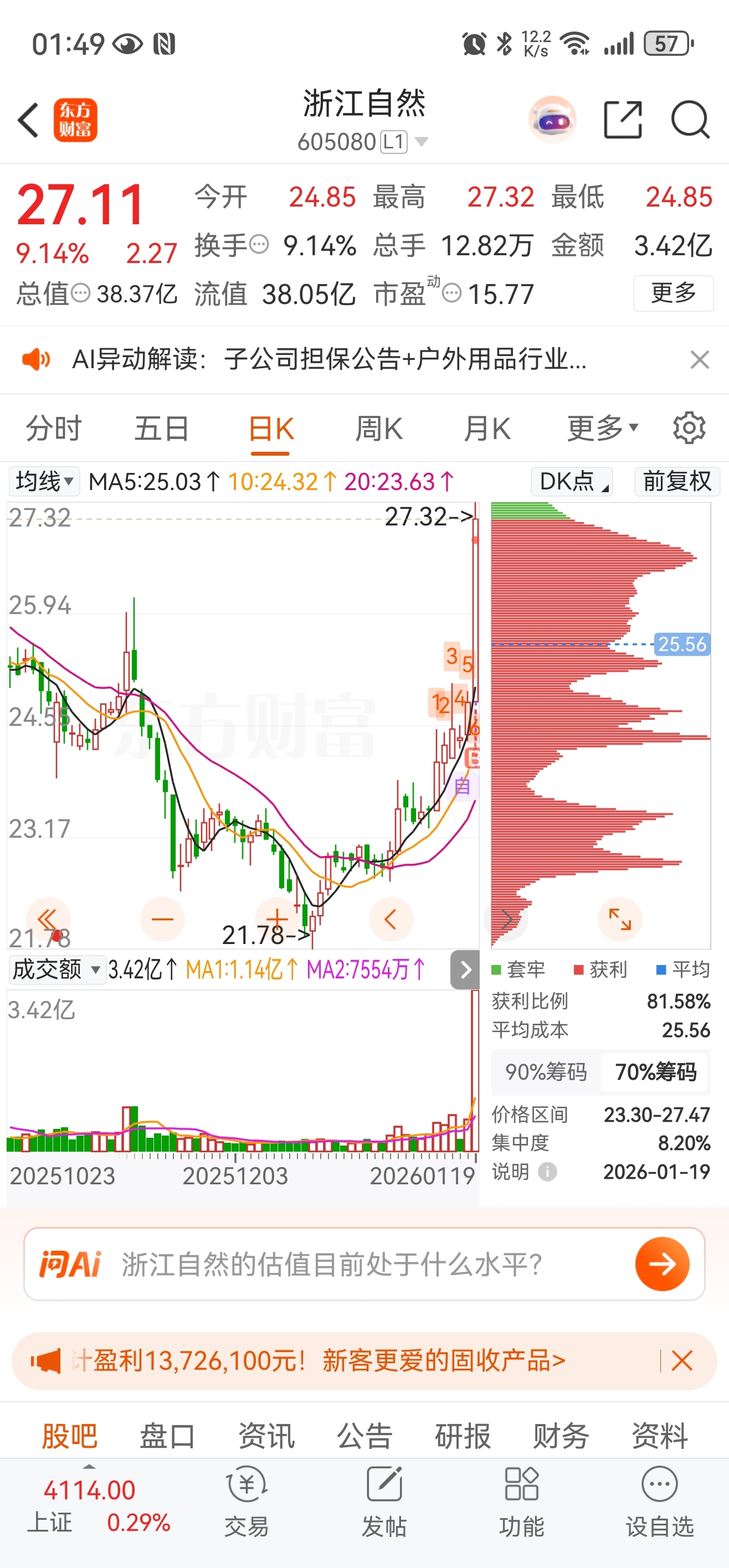 $浙江自然(SH605080)$ 涨幅9.14% 换手9.14%。老庄暗示什么?