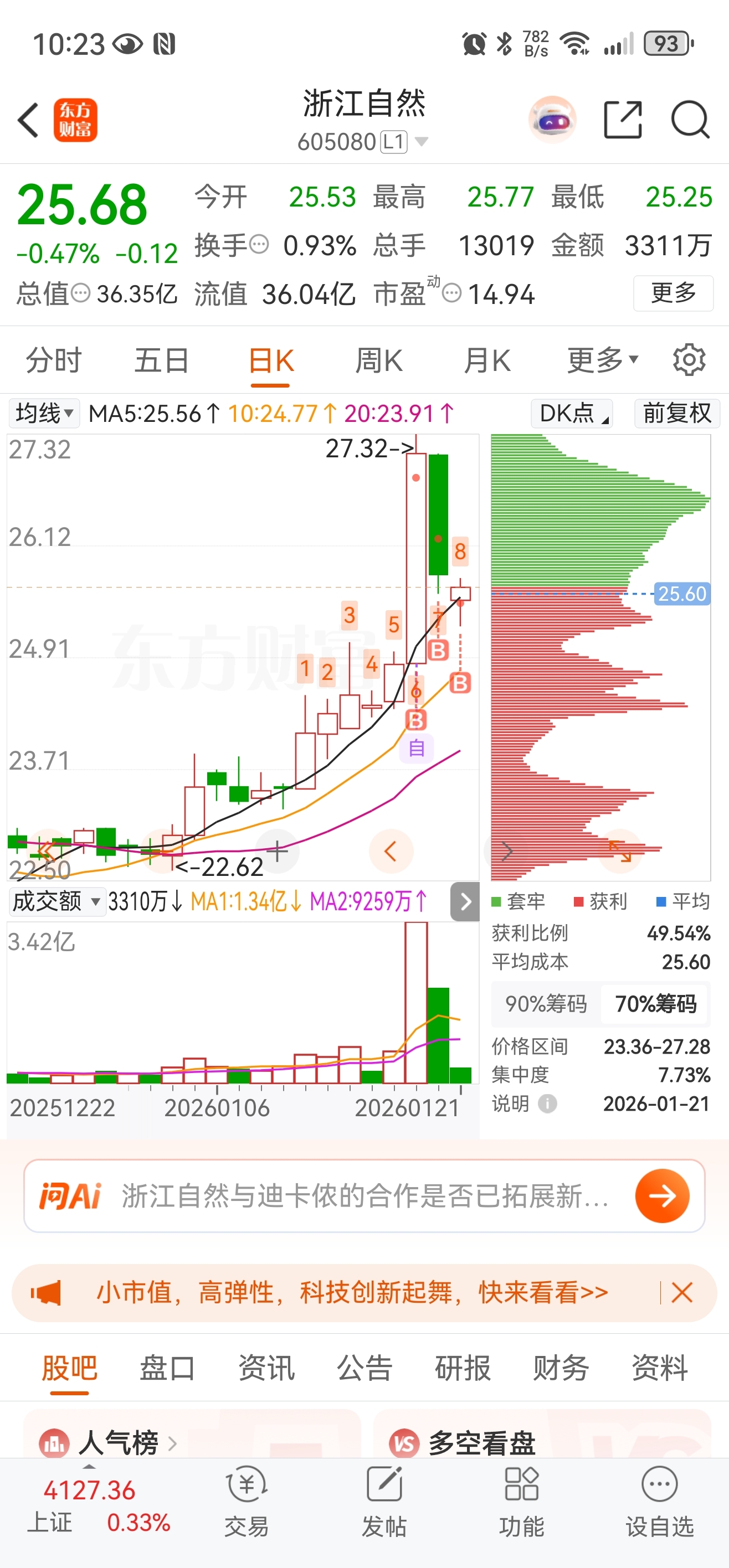 $浙江自然(SH605080)$ 买不动了,等死吧