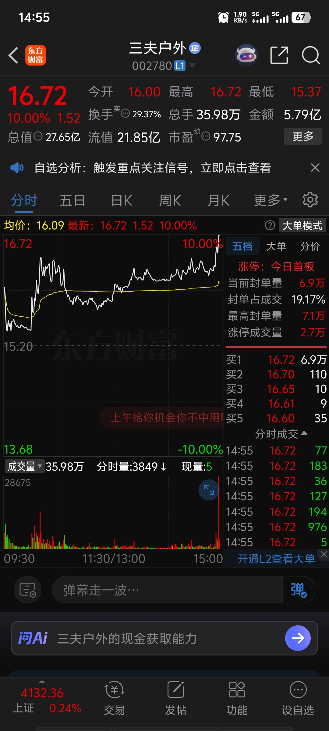 $浙江自然(SH605080)$ 舒服,叫你们过来拉板是没错的!!爽!!