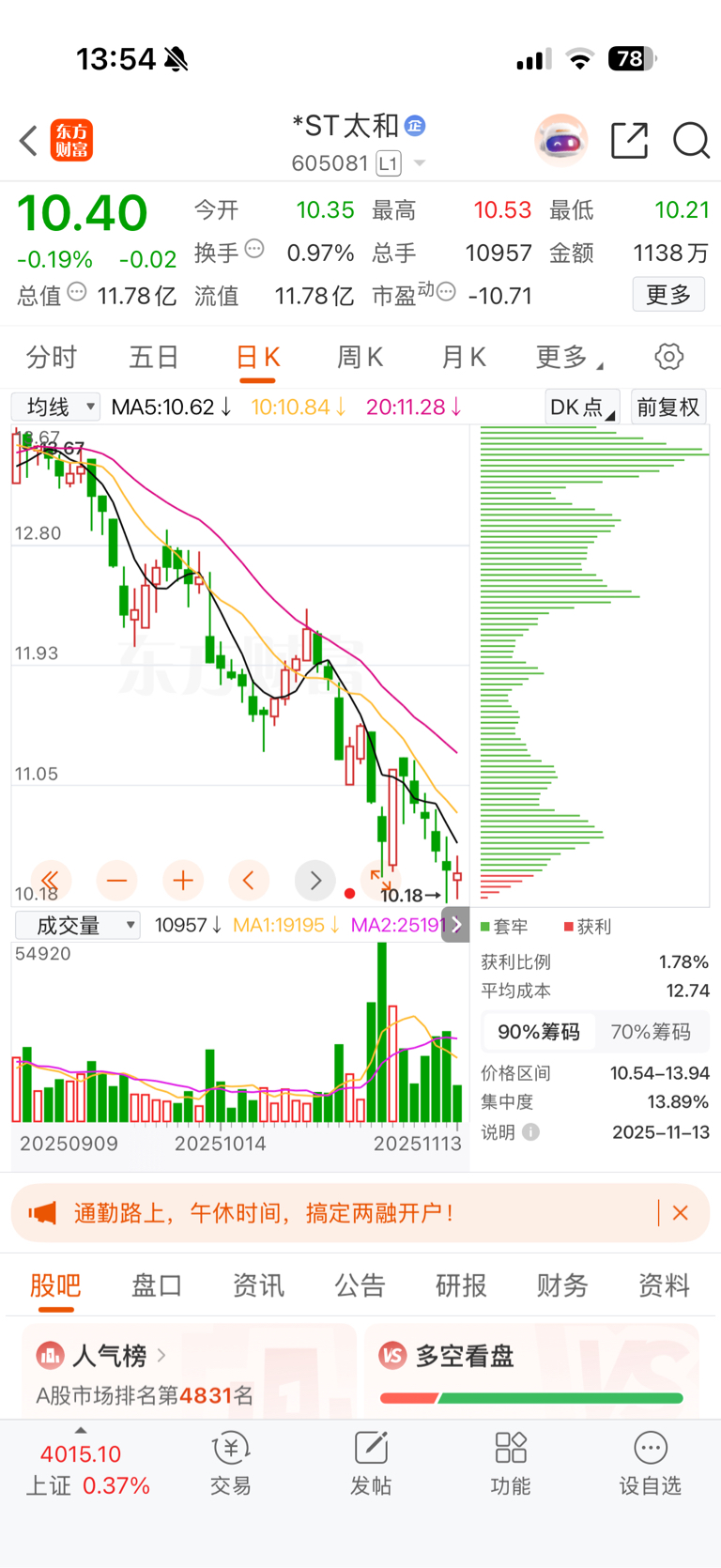 $*ST太和(SH605081)$ 收根假阳线,明天继续下跌