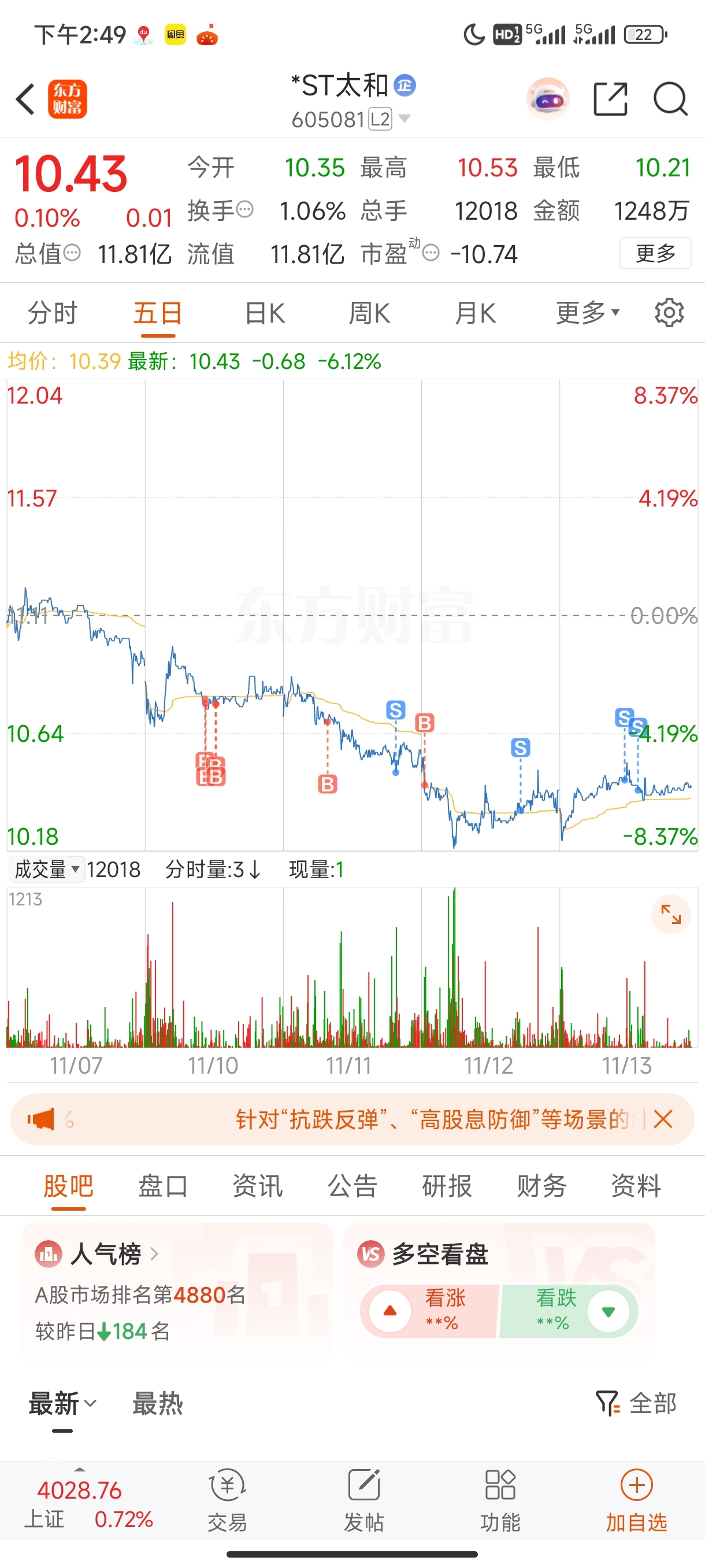 $*ST太和(SH605081)$ 是真的走了,骗骗主力的主力太恶心了。没见过这种票,走了走了,亏了三个点。