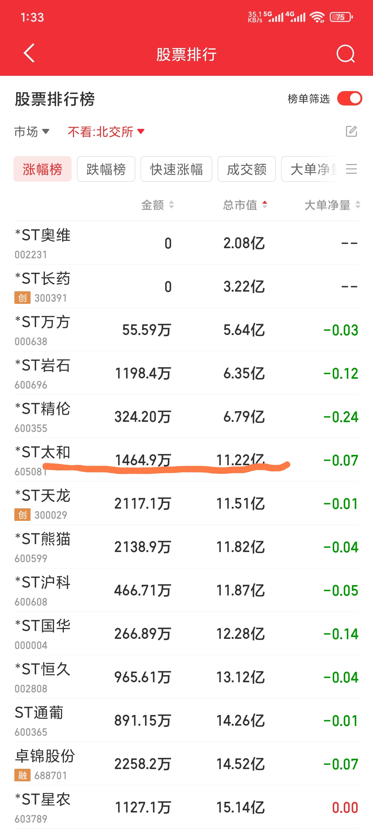 $*ST太和(SH605081)$ 去除北交所,为啥去除,因为北交所算一个板块,50万的起步价没有流动性。所以太和这市值叹为观止