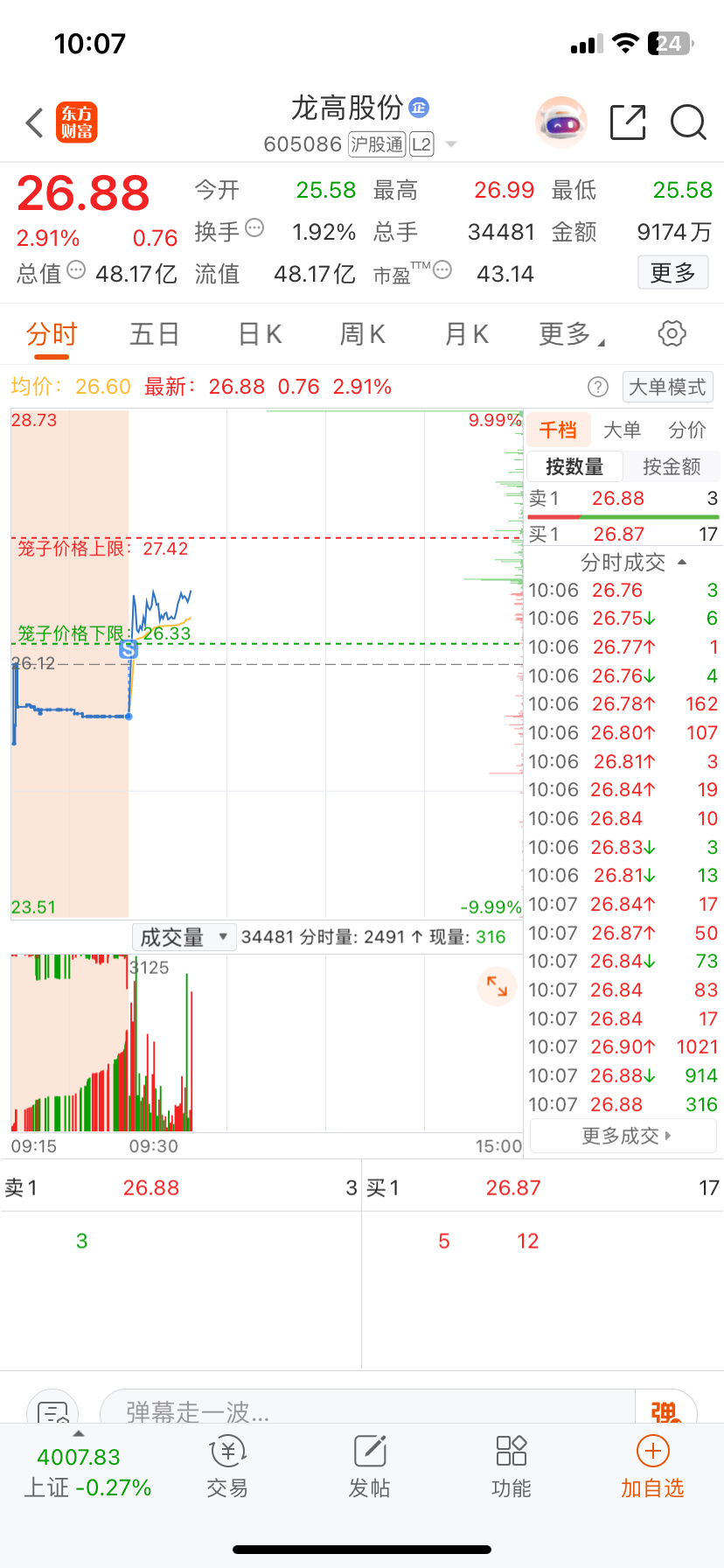 $龙高股份(SH605086)$ 我真的想糙我自己,每次都改不掉开盘就卖的习惯