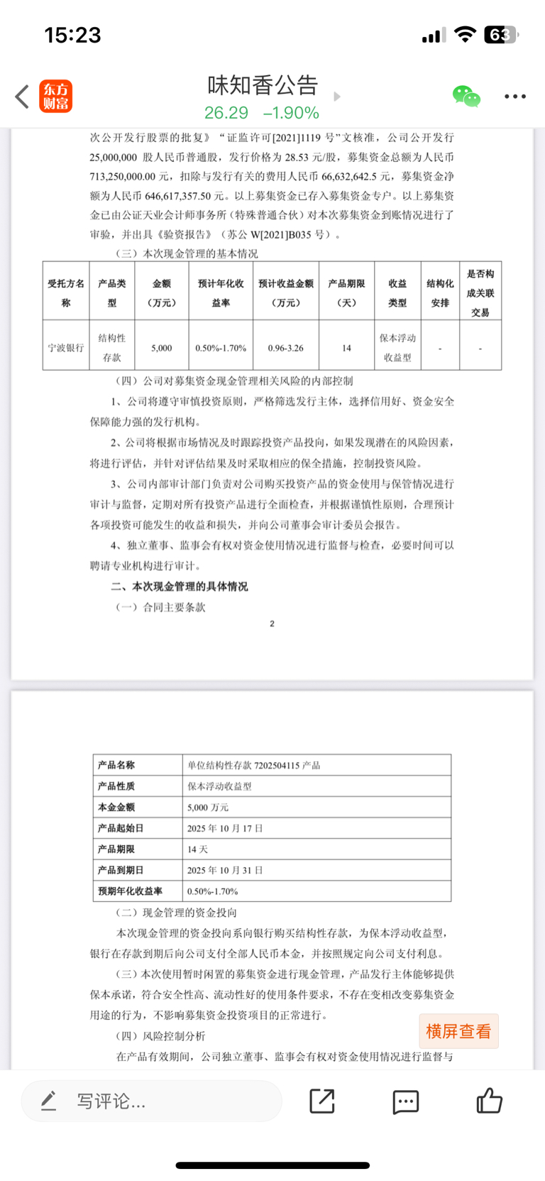 $味知香(SH605089)$ 公告少一个5000万理财收回公告啊。董秘怎么搞的……
