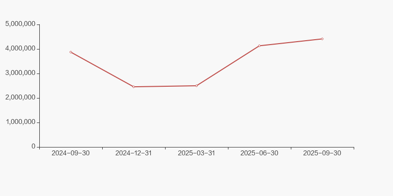 截至2025年9月30日,公司最新总股本为6.79亿股,其中流通股本为6.77亿股。户均持有流通股数量由上期的3.25万股上升至3.42万股,户均流通市值118.59万元。