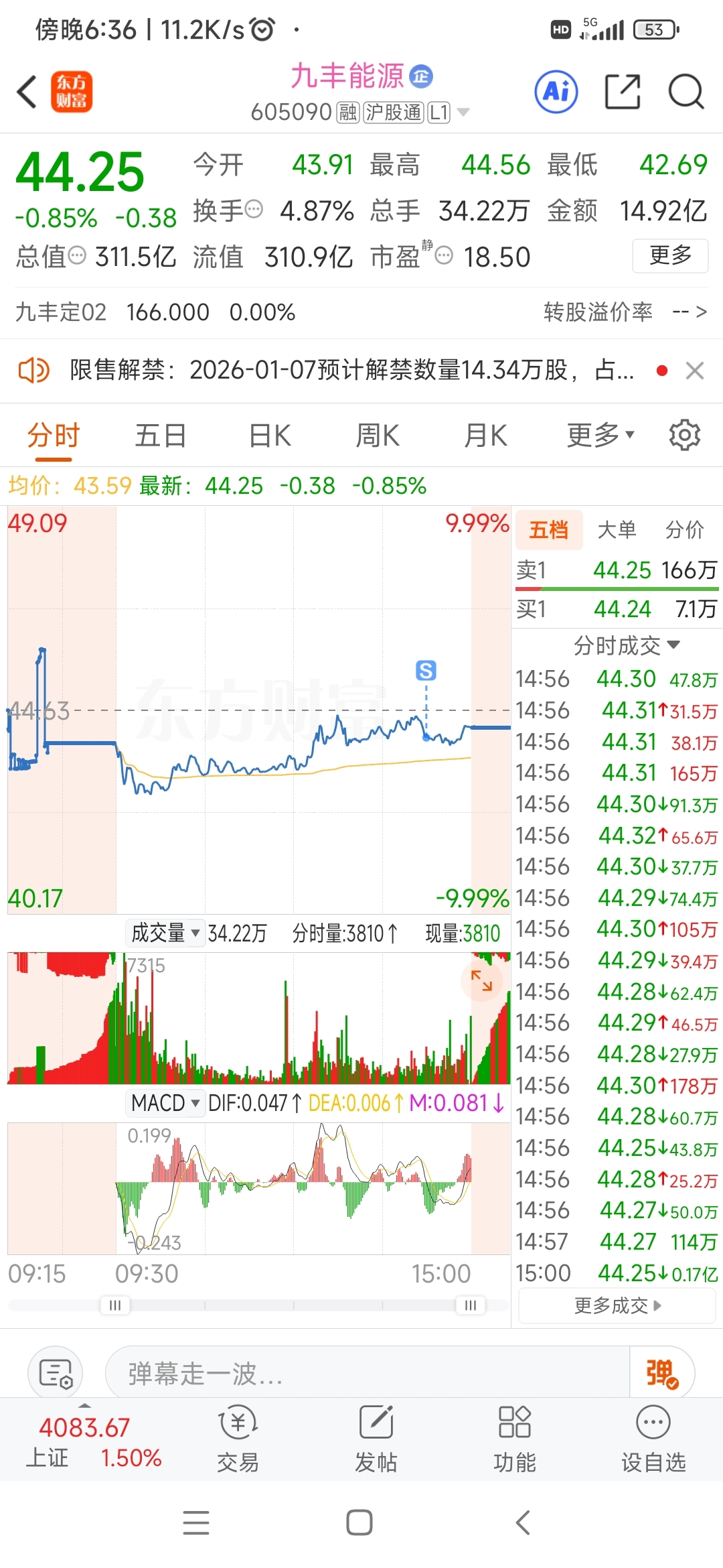 $九丰能源(SH605090)$ 我今天提前减持了