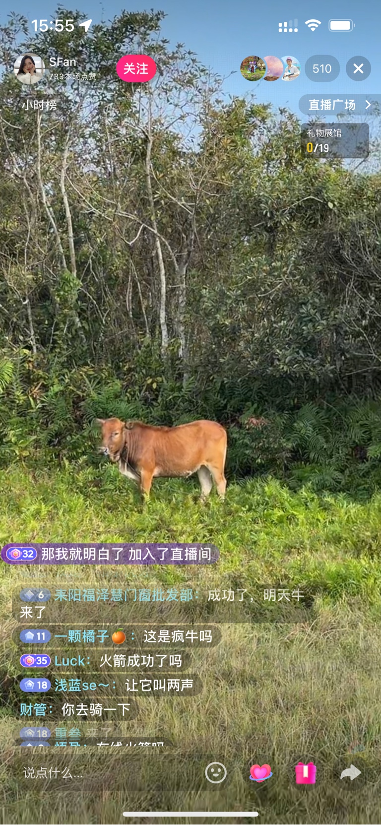 发射直播间,发完之后,后面的牛开始叫起来了
