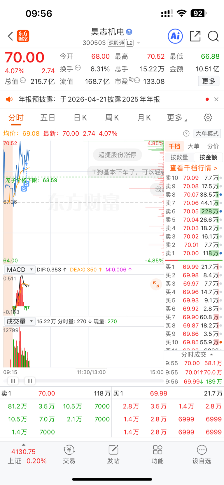 温馨提示: 1.根据《证券法》规定,禁止编造、传播虚假信息或者误导性信息,扰乱证券市场;2.用户在本社区发表的所有资料、言论等仅代表个人观点,与本网站立场无关,不对您构成任何投资建议。用户应基于自己的独立判断,自行决定证券投资并承担相应风险。《东方财富社区管理规定》