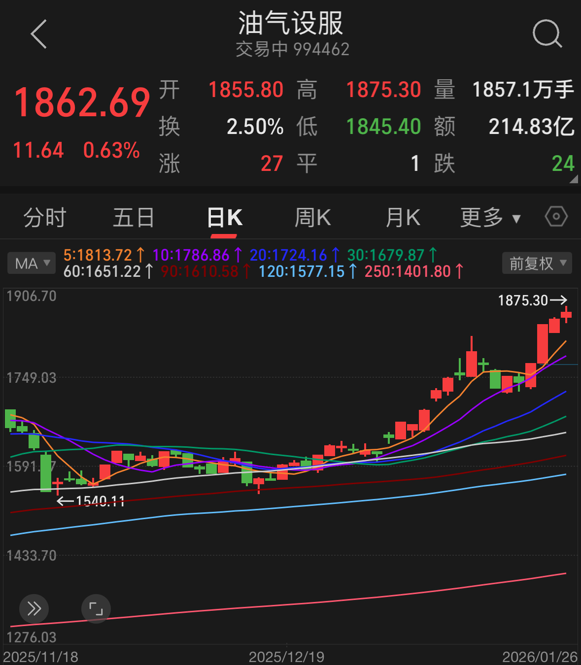 今天市场关注点是大宗油气,主要是油气资源股。但油气是大板块,除了资源股,还有油气设备和服务,预计这些配套的油气股后面也会跟随抬升。九丰也涉及油气设服概念,相信资金很快也都会关注到。虽然九丰跟着商业航天有点回调,我觉得反而还给了机会,后面跟油气板块走高是必然趋势,已加仓,冲