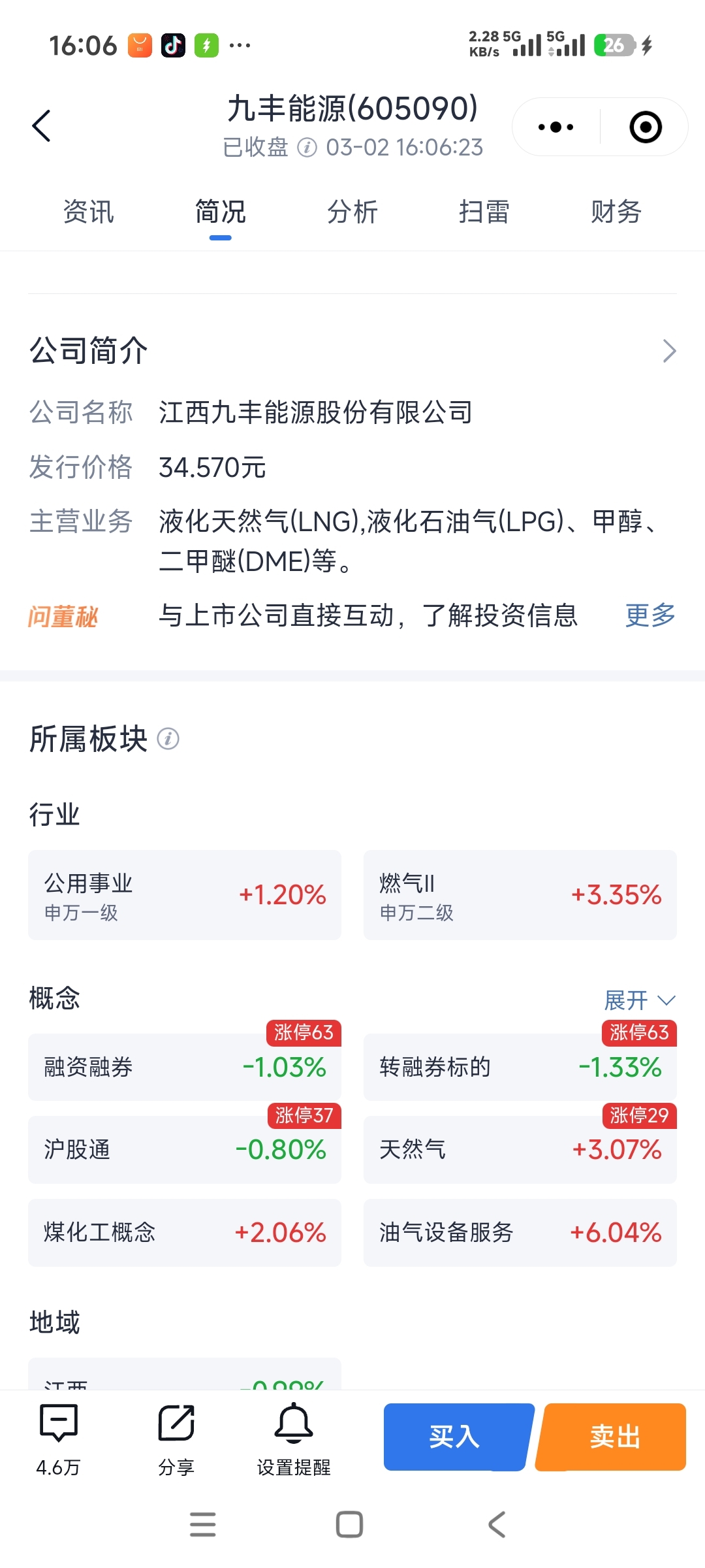 $九丰能源(SH605090)$ 主营液化天然气,液化石油气,甲醇