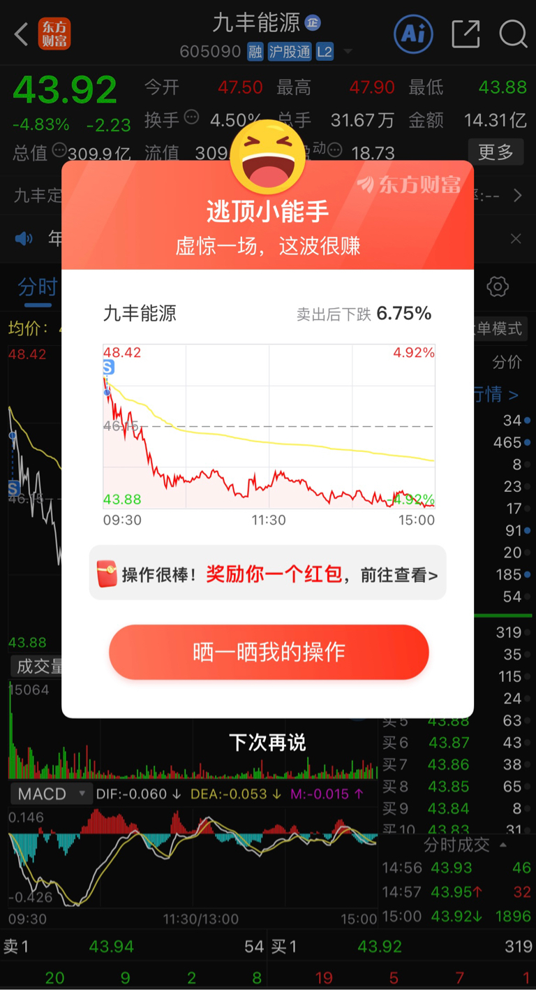 $九丰能源(SH605090)$ 感谢主力今天的高开,保留两个点的利润先跑了