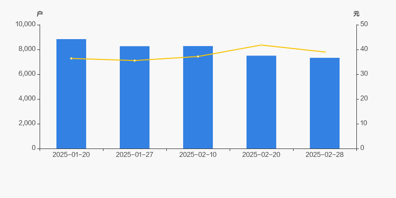 2025年1月20日至今,公司股东户数显著下降,区间跌幅为17.11%。2025年1月20日至2025年2月28日区间股价上涨7.17%。