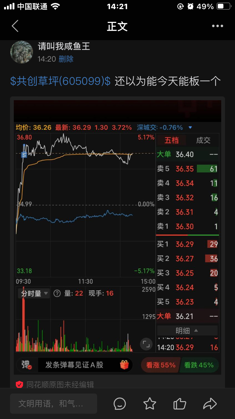 $共创草坪(SH605099)$ 期望太高了
