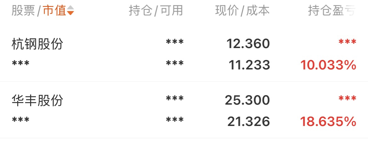 今天杭钢和华丰都不错,耶