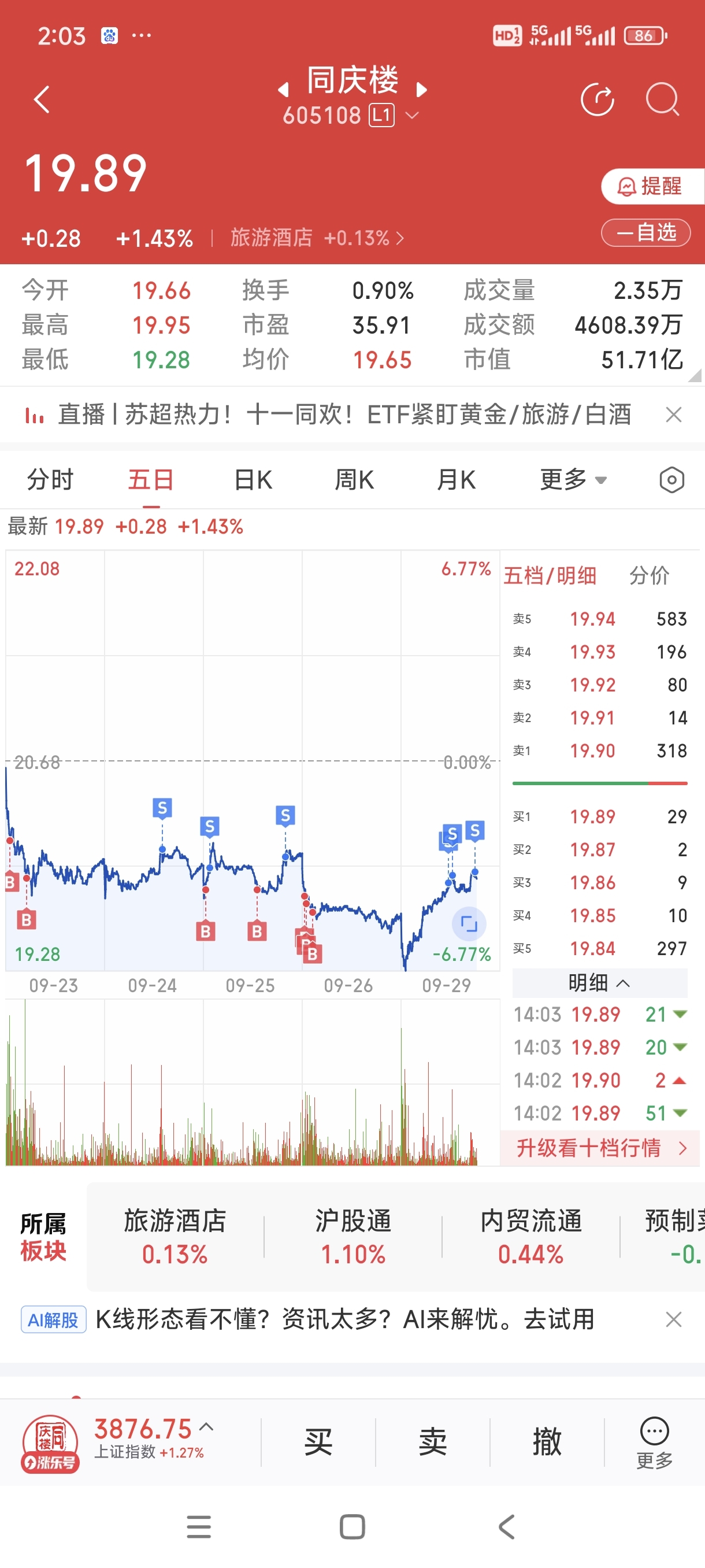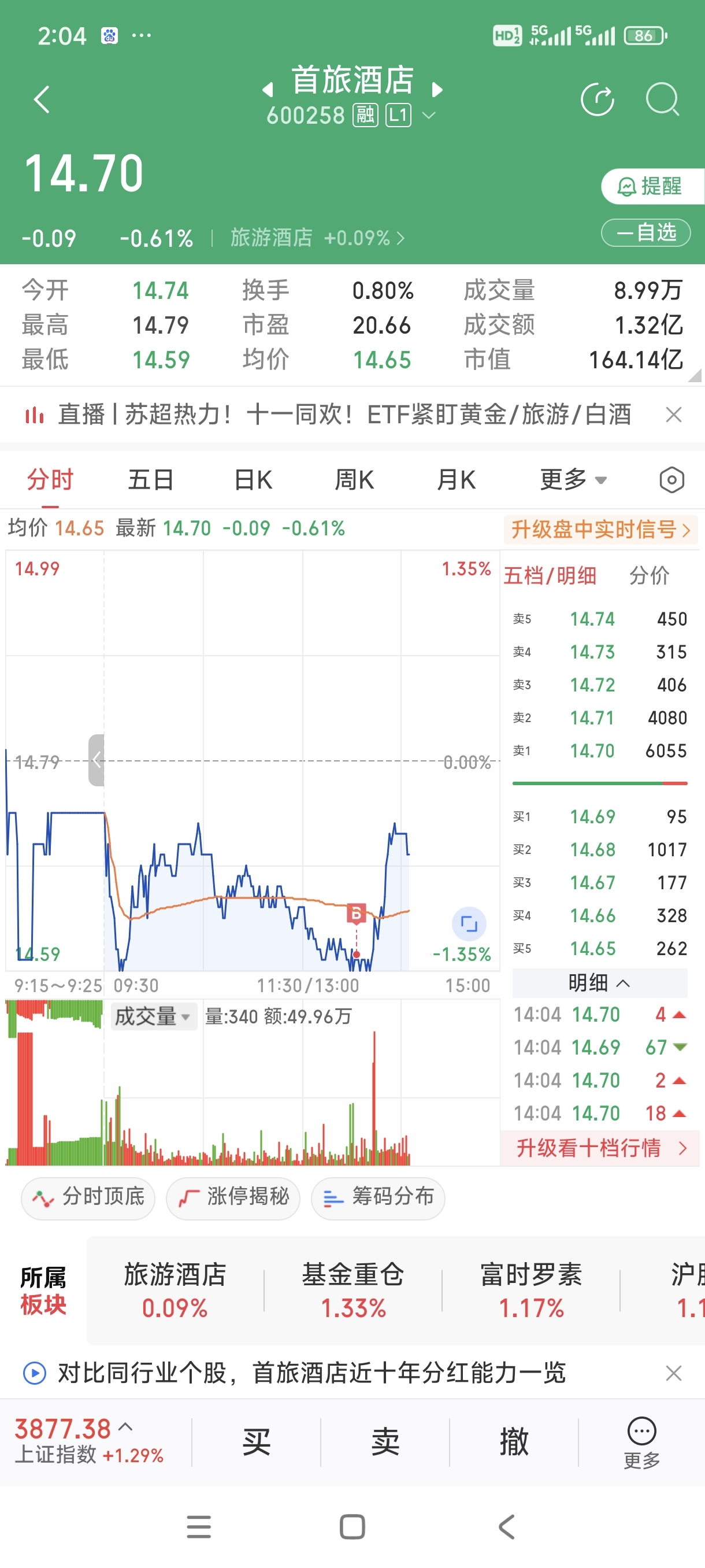 被关小黑屋四五天,中间t了几次,今天终于获利出局,转手我就买入了绿的首旅